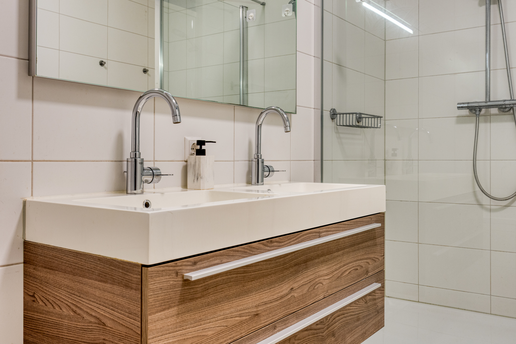 Ligbad dubbele wastafel inloopdouche