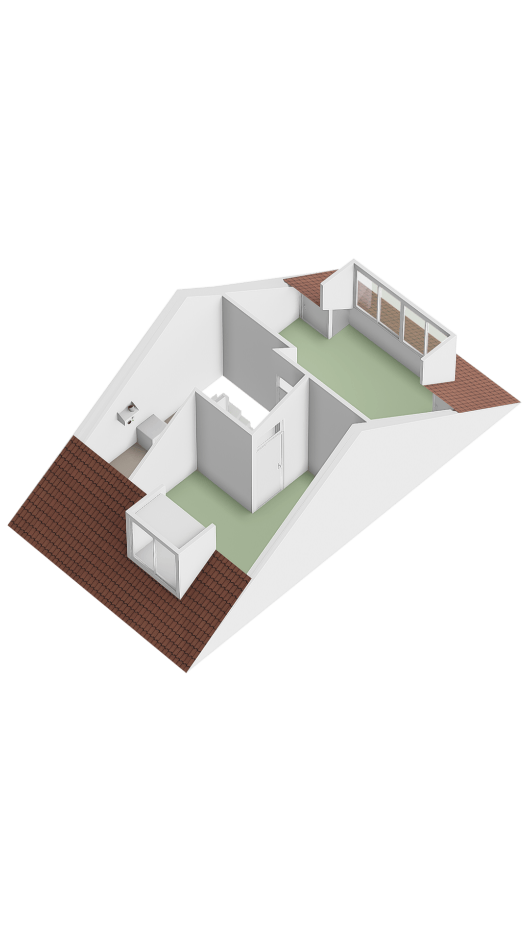 The attic features large dormer windows on both sides, creating two additional bedrooms. These rooms are also neatly finished and perfectly suitable as hobby or workspaces.