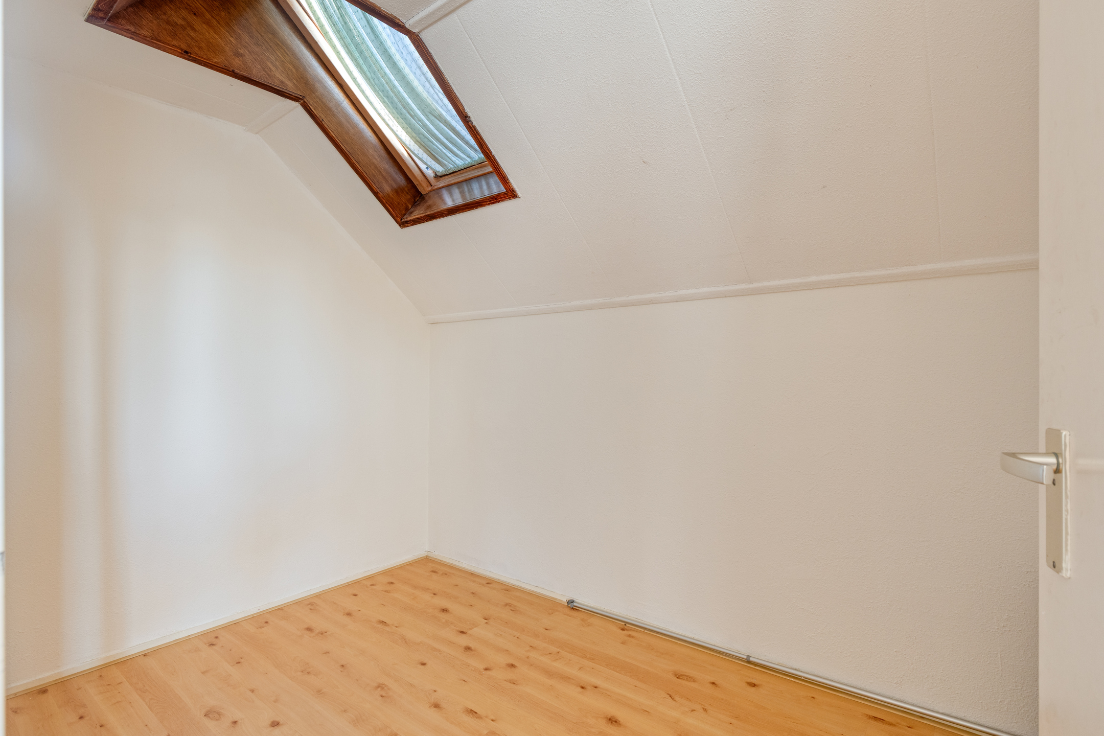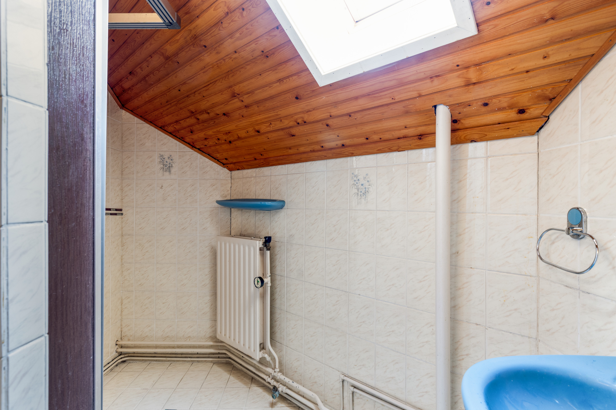 The bathroom is basic and ready for renovation. The roof window provides plenty of natural light and makes it easy to turn this into a fresh, modern family bathroom — for example with a walk-in shower, double washbasin and extra storage.