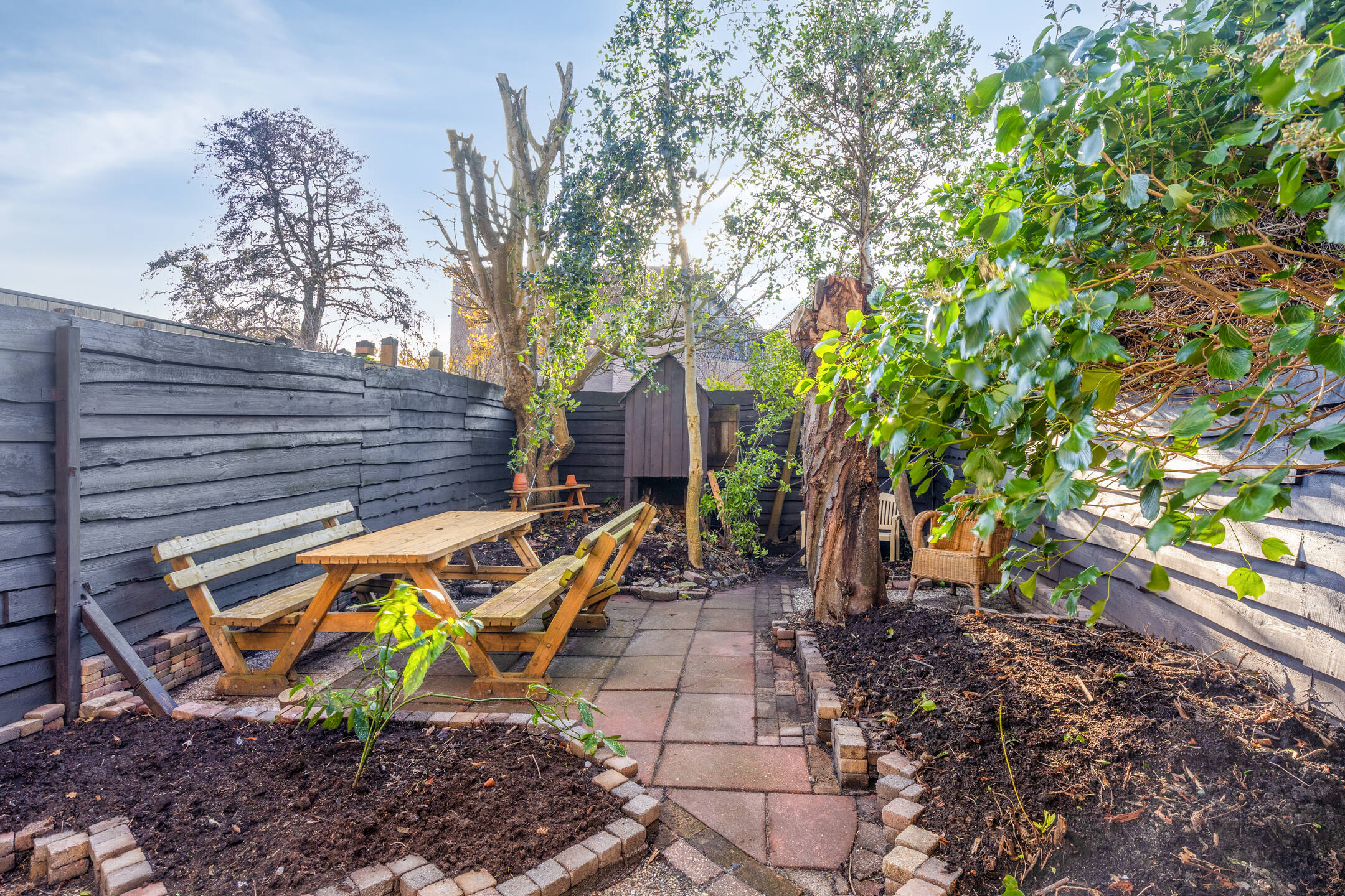 A backdoor leads to the rear garden: a large, well-shaped garden offering plenty of privacy and a favourable south-facing position. It’s an ideal space to transform into your perfect outdoor area, whether you envision a lounge corner, a play area or beautifully planted borders.