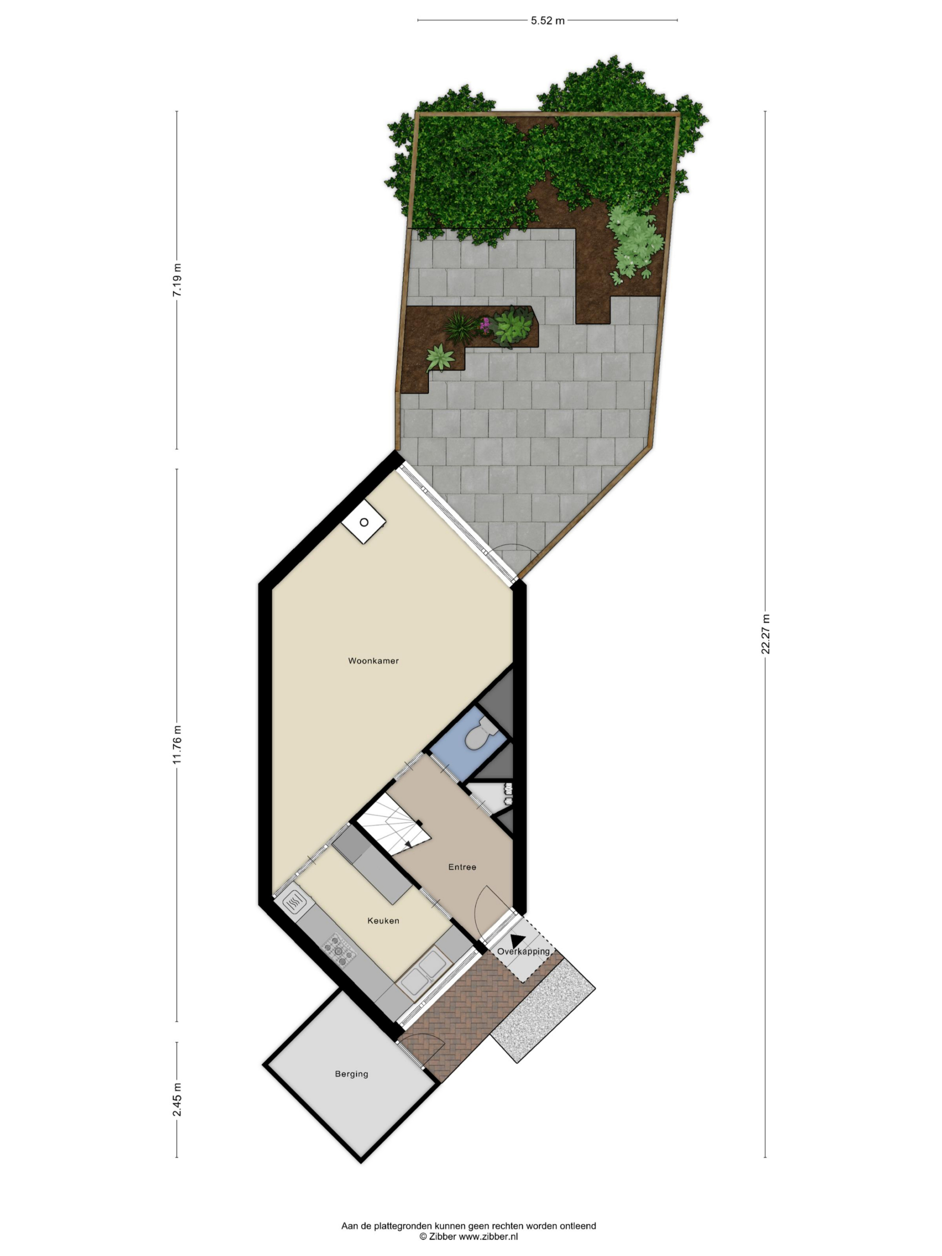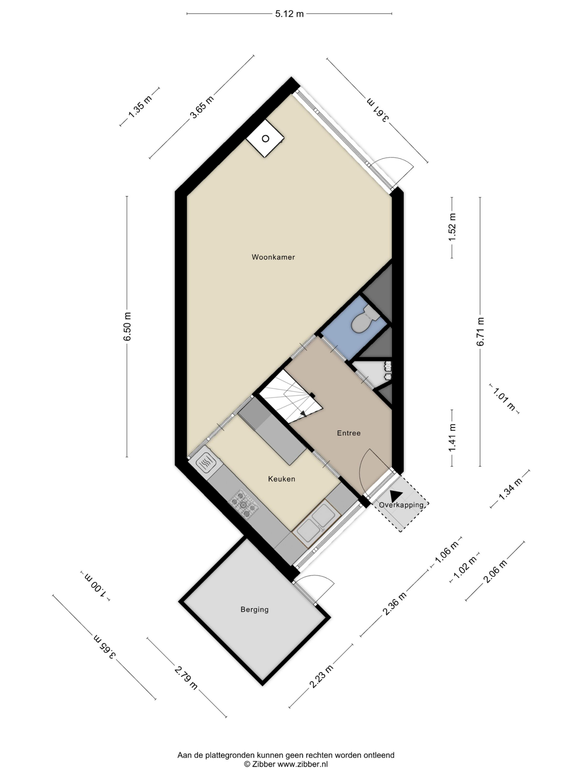 You enter the home through the hallway with access to the toilet, the meter cupboard and the staircase to the first floor. From the hall, you step into the living room: a bright and spacious area nearly 12 metres long that can be fully redesigned to suit your taste. Thanks to the playful shape of the house, it’s easy to create a surprising layout with a comfortable sitting area and a generous dining space.