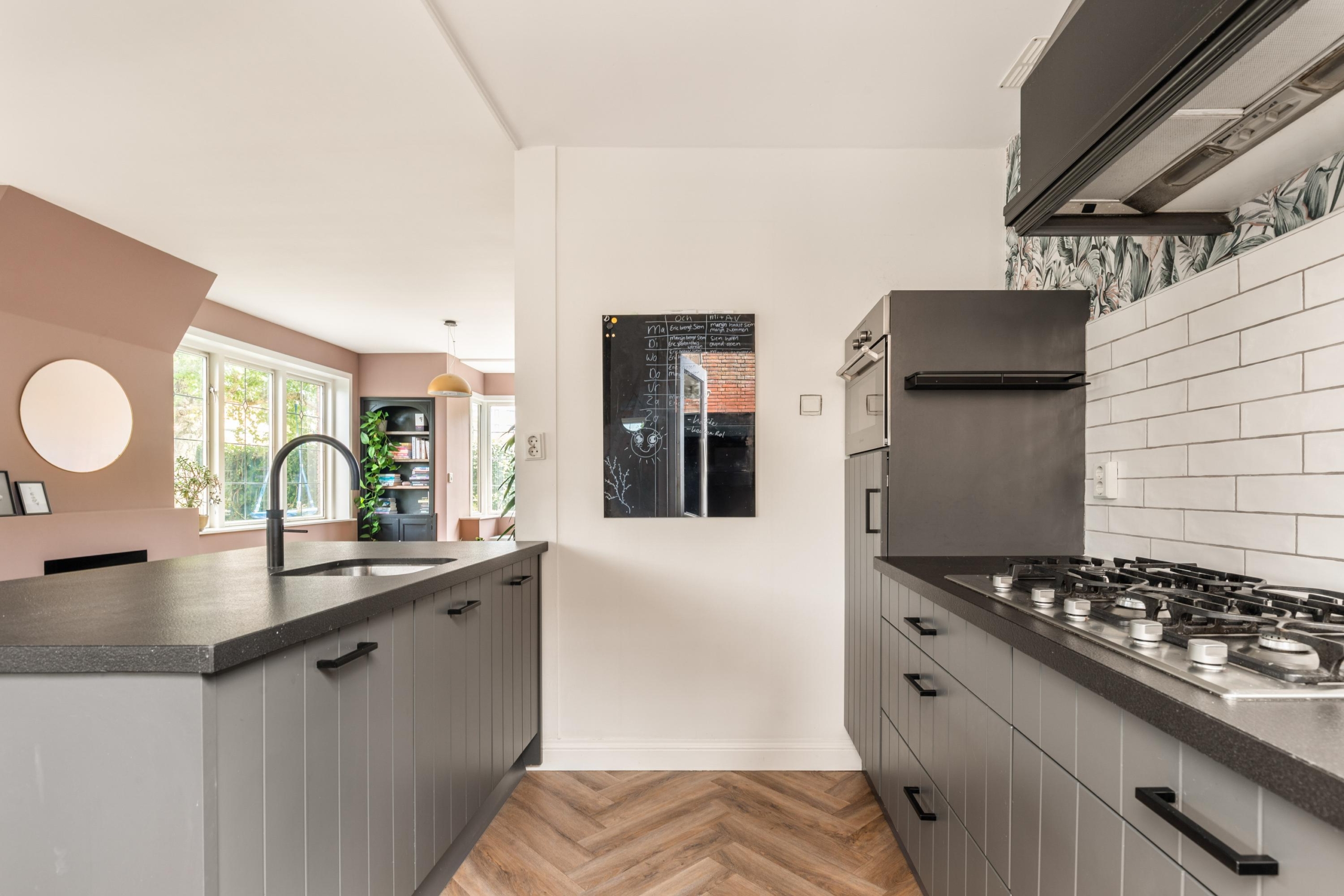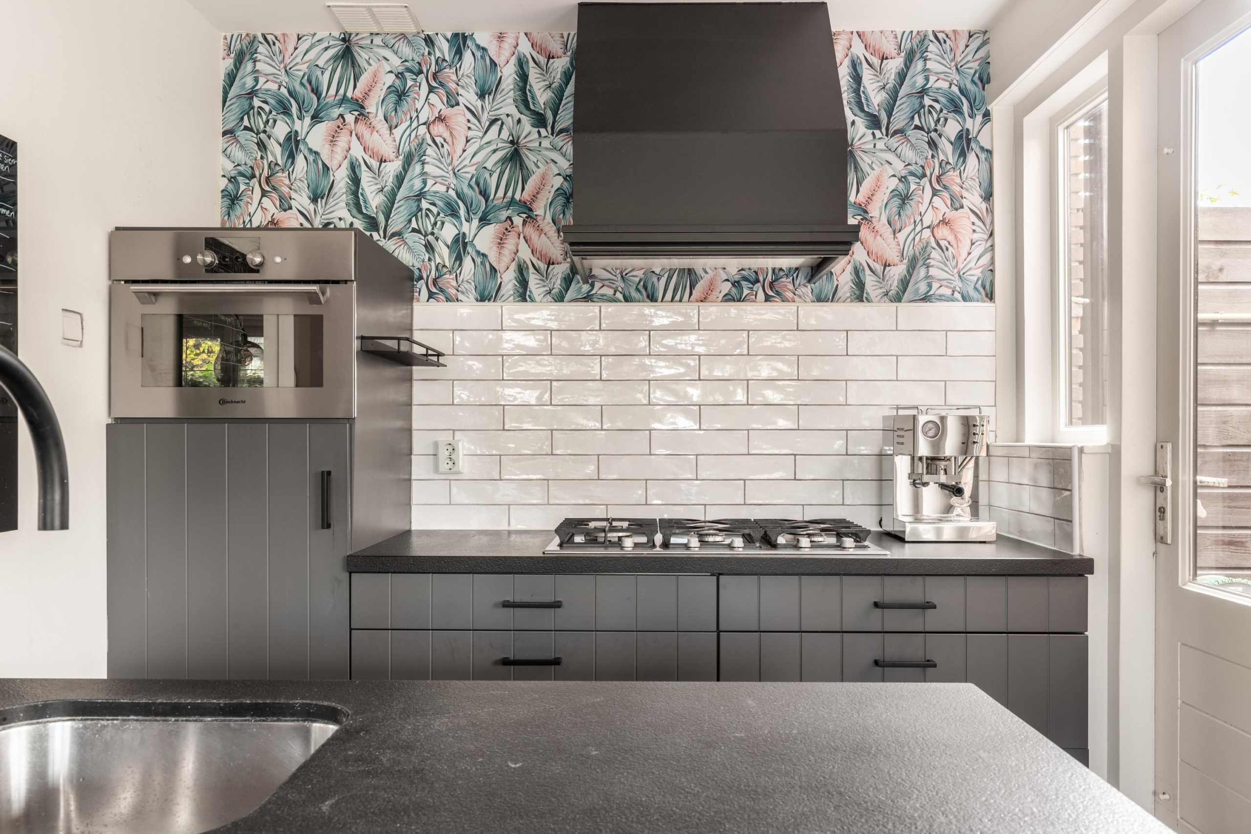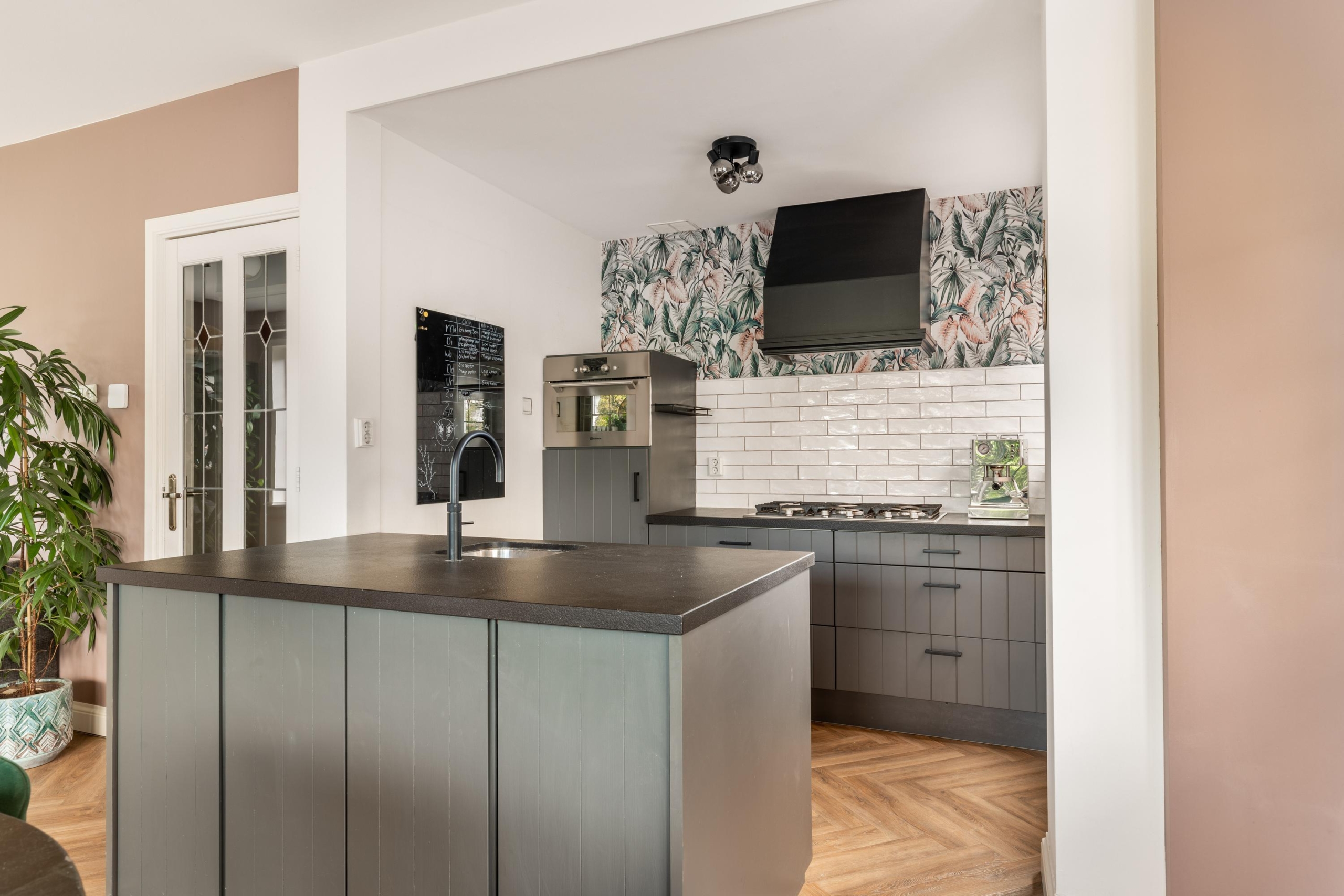 The open kitchen is a true eye-catcher: both rustic and sleek, equipped with modern built-in appliances such as a Quooker, dishwasher, oven, and refrigerator.