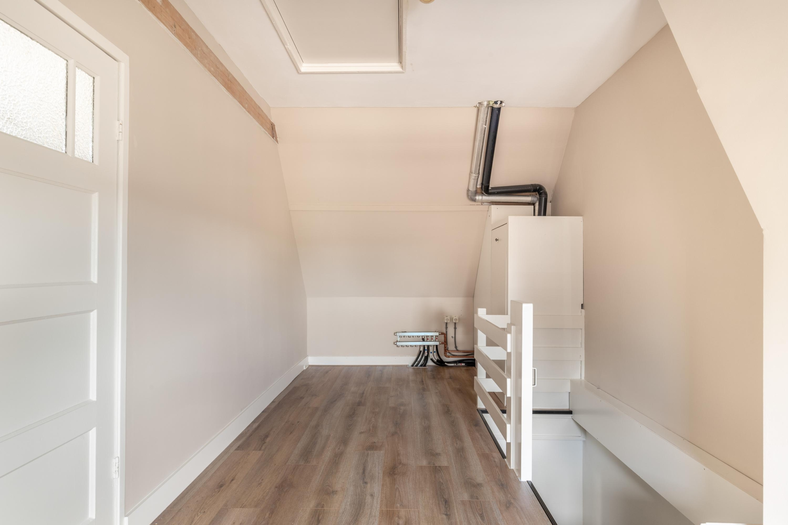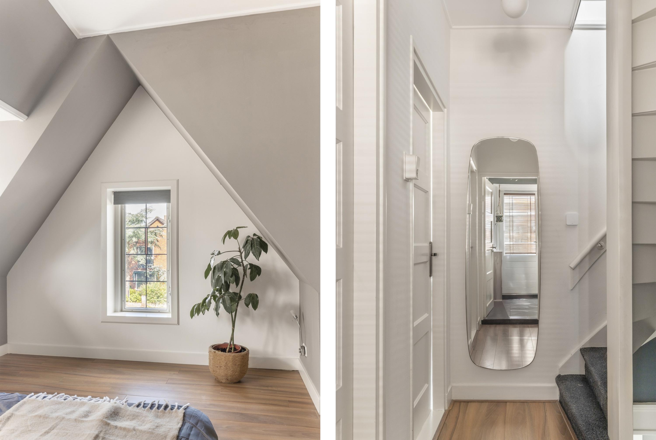 The top floor is spacious, versatile, and neatly finished. Perfect for use as an extra bedroom, home office, or hobby room. Here you’ll also find the connections for the washing machine and dryer.