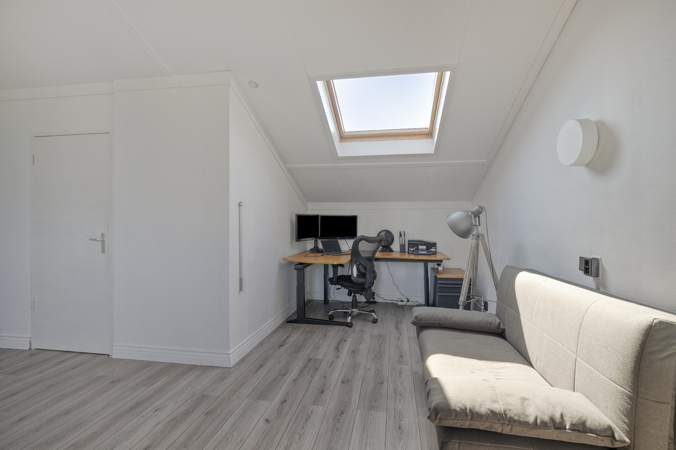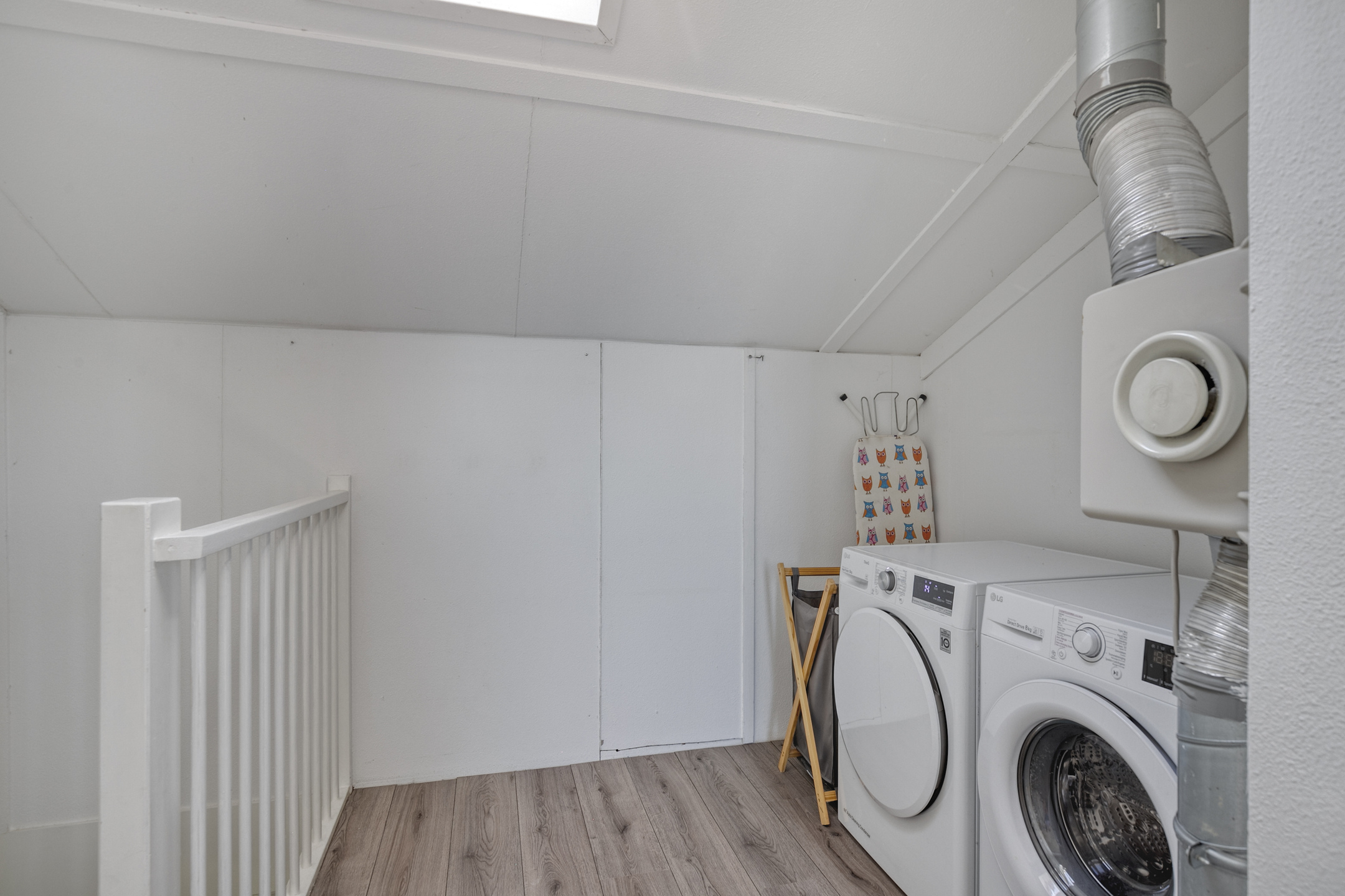 The attic is accessed via a fixed staircase and offers plenty of possibilities: an additional bedroom, hobby space, or workout area. A roof window makes this floor surprisingly bright and airy. Here you will also find the connections for the washing machine and dryer, neatly tucked away in a separate utility space – a unique feature not found in any other house on the street.