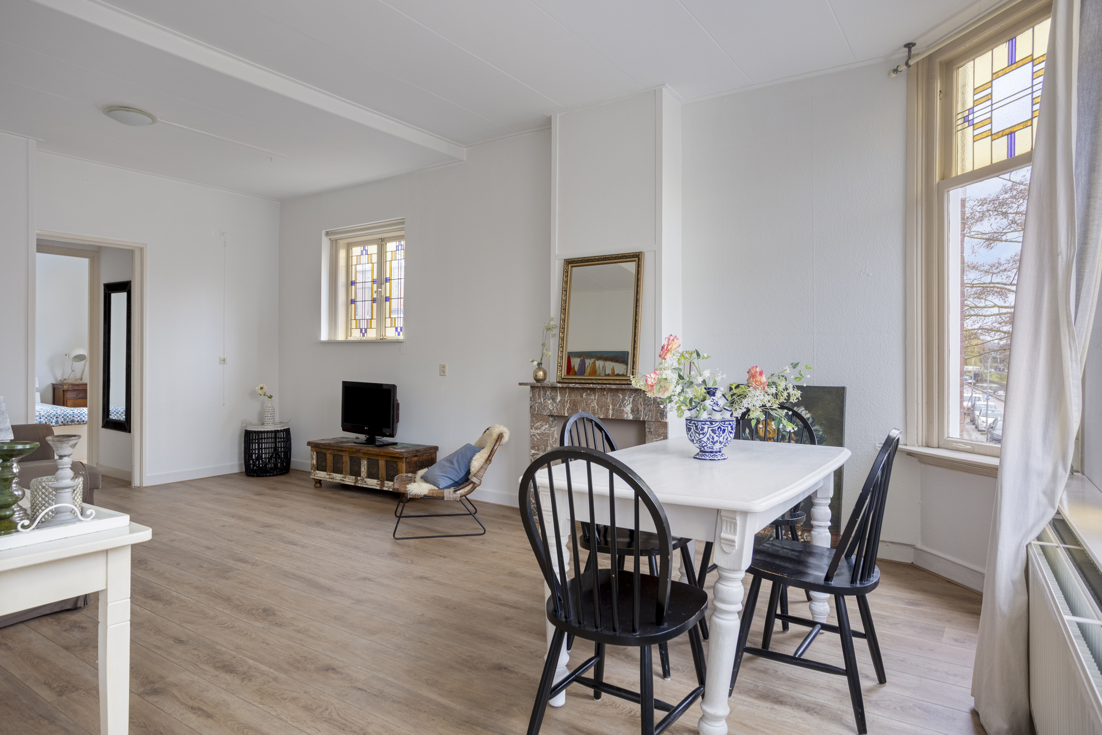 Bij binnenkomst via de hal en trapopgang, loop je via de trap door naar de eerste verdieping waar het apartment zich bevindt. In de gang van deze woning bevinden zich de badkamer, aparte toiletruimte, de slaapkamer en de ruime living. De woonkamer met grote ramen zorgen voor een zee aan daglicht en een prachtig zicht op het de gracht. Op zonnige dagen vloeien binnen en buiten moeiteloos in elkaar over. De open keuken is van alle gemakken voorzien en grenst aan de woonkamer.