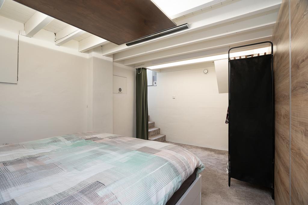 Voorbij de badkamer kan u met de trap naar beneden de slaapkamer vinden. De slaapkamer is ruim en u kan hier dan ook een groot bed in kwijt. Aan het eind van de slaapkamer wordt de ruimte in tweeën gesplitst door een kleine roomdivider. De tweede ruimte die hierdoor gecreëerd wordt is een ruime inloopkast. Tevens heeft de slaapkamer een heuse thuisbioscoop voor vele avonden film plezier.