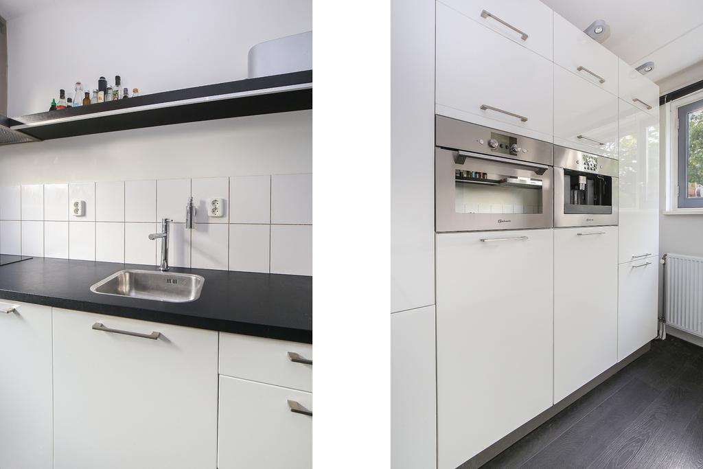 De entree is te bereiken via de voortuin, als u de woning binnenstapt komt u direct terecht in de entreehal, meterkast, via de deur komt u binnen in de ruime en lichte woonkamer met open keuken inclusief moderne inbouwapparatuur zoals; 4-pit inductiekookplaat, afzuigkap, inbouw combimagnetron, en inbouw koffiezetapparaat beide van het merk Bauknecht. Het ruime aanrechtblad en mengkraan maken de keuken af. Via een aparte hal komt u bij het separaat toilet met fonteintje, doormiddel van de trap bereikt u de eerste etage.