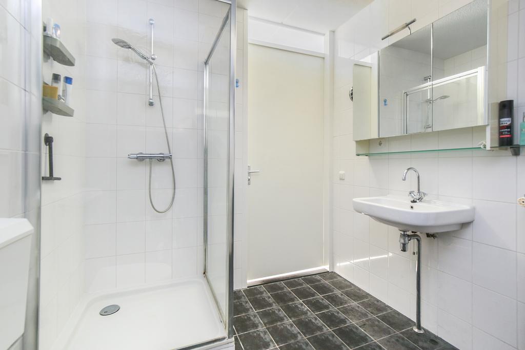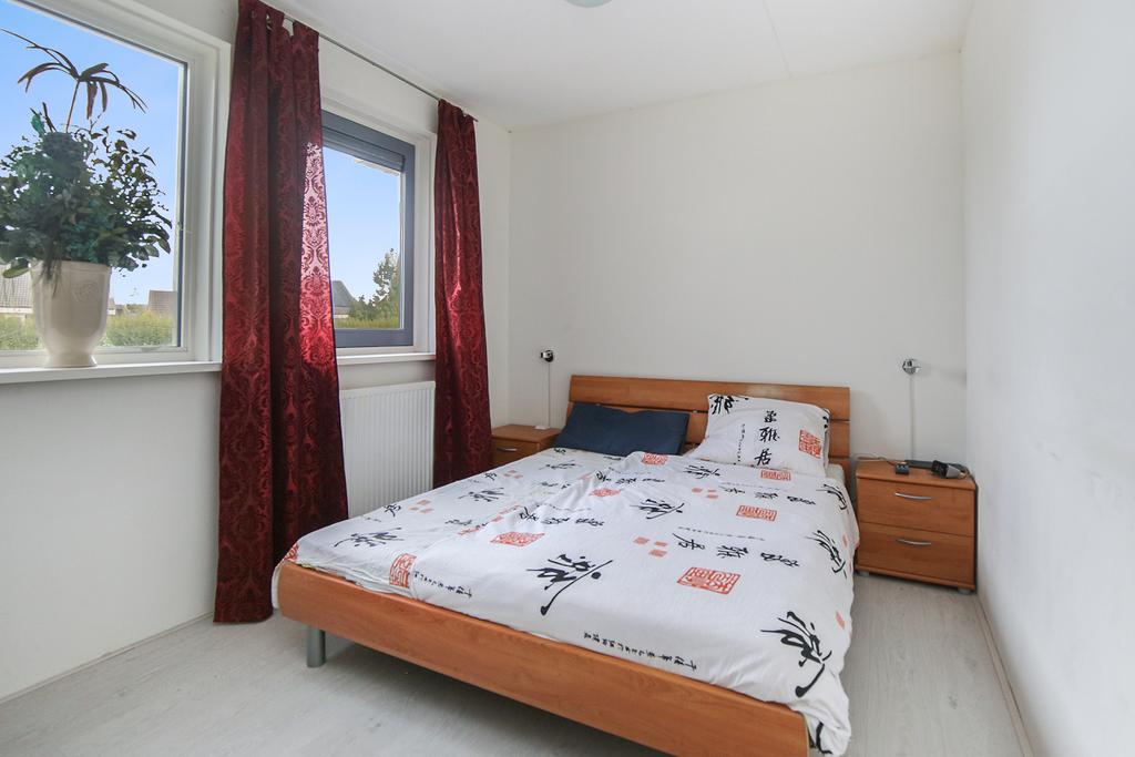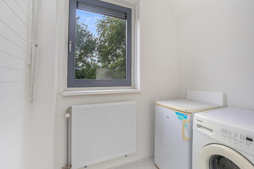 Op de eerste etage komt uit op de overloop, via de deur recht voor u komt u binnen in de eerste ruime slaapkamer met veel lichtinval. Aan de andere zijde van de overloop vindt u aan de linkerkant de tweede slaapkamer, tevens met veel natuurlijk lichtinval en genoeg ruimte voor een bed en een grote kledingkast. Aansluitend aan de linkerkant zit de is de wasruimte (eventueel een werkkamer van te maken) waar genoeg ruimte is voor een wasmachine, droger en een kast voor diverse benodigdheden. De ruime badkamer is voorzien van een inloopdouche cabine, wastafel en tweede toilet en heeft een neutrale afwerking.
