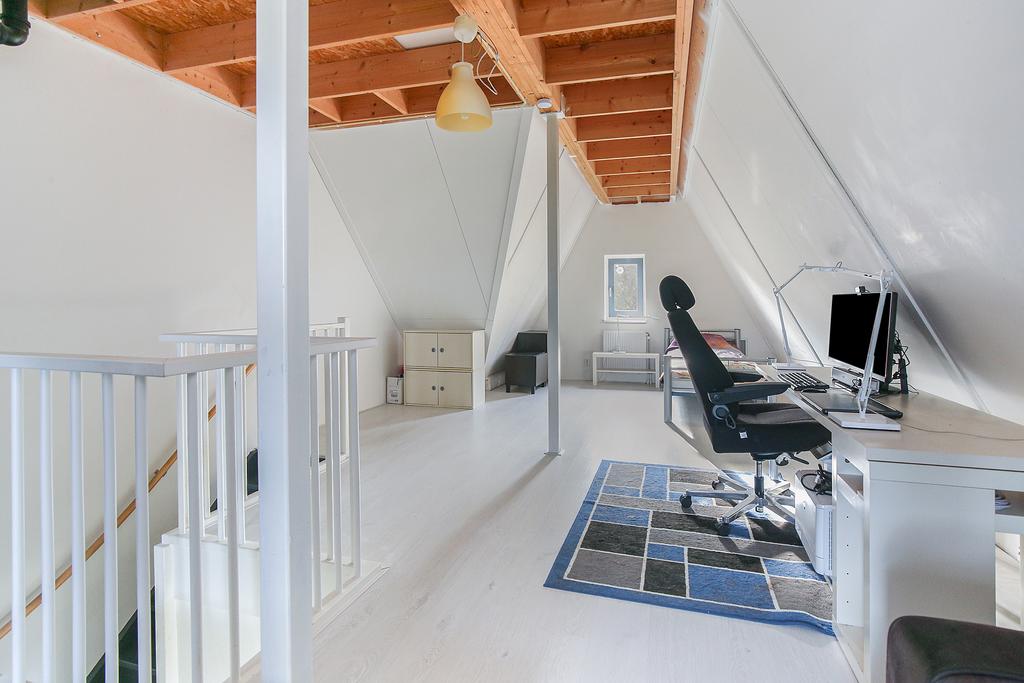 De laatste trap omhoog brengt u naar de zolder. De zolder is een oase van rust en veelzijdigheid, perfect voor verschillende doeleinden. Of je nu behoefte hebt aan een extra woonruimte om te ontspannen, te entertainen of om je hobby's uit te oefenen, de zolder biedt alle ruimte en mogelijkheden. De open plattegrond en overvloedige natuurlijke lichtinval creëren een gastvrije en uitnodigende sfeer. De zolder is ook geschikt als een comfortabele logeerkamer voor familie en vrienden die op bezoek komen.